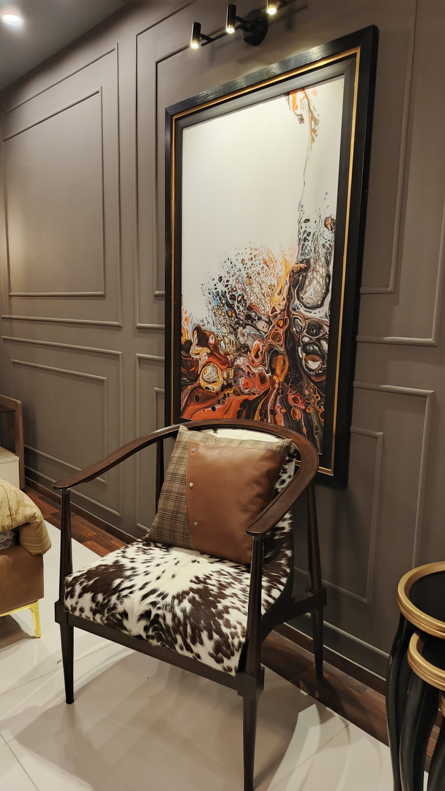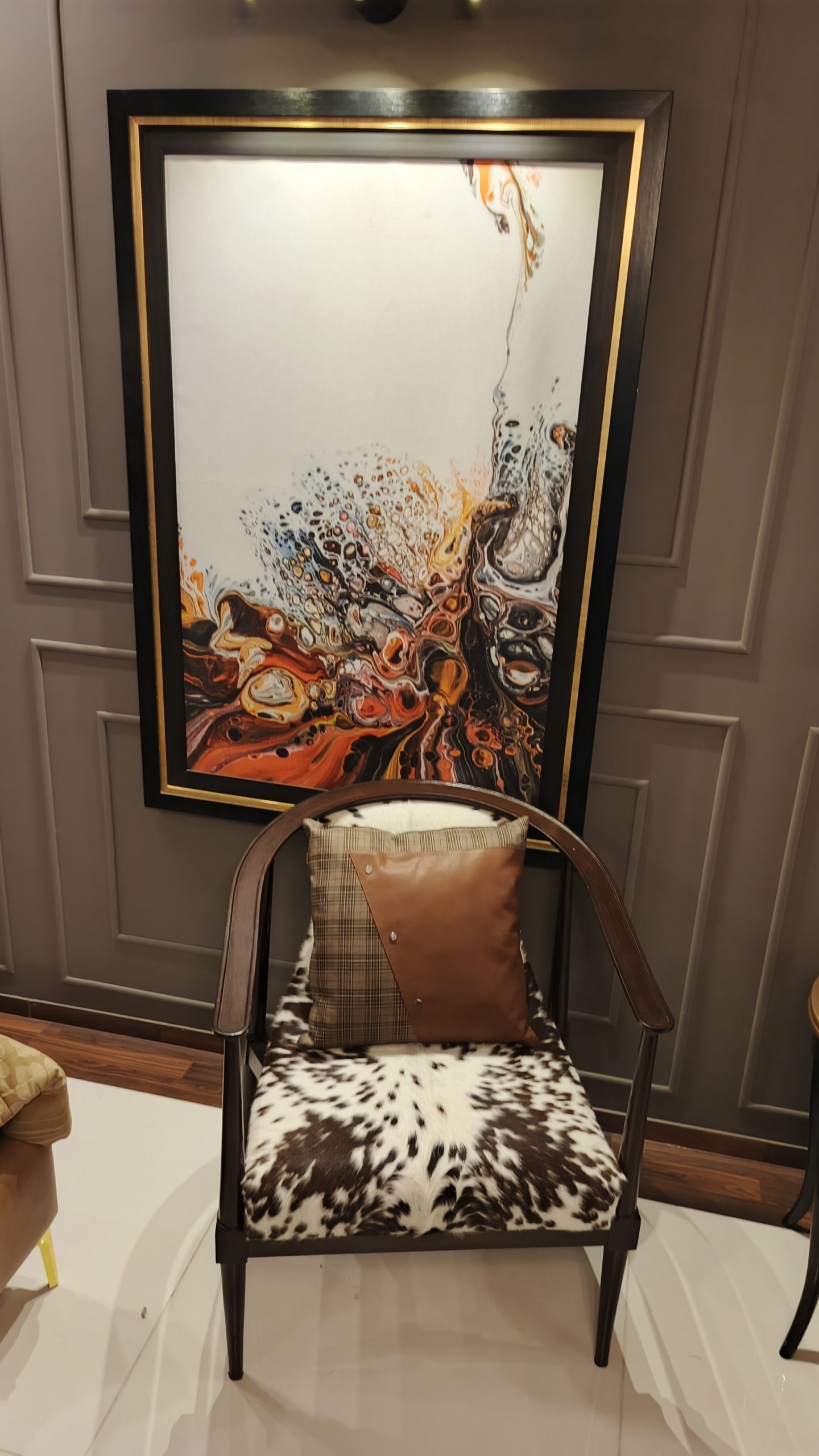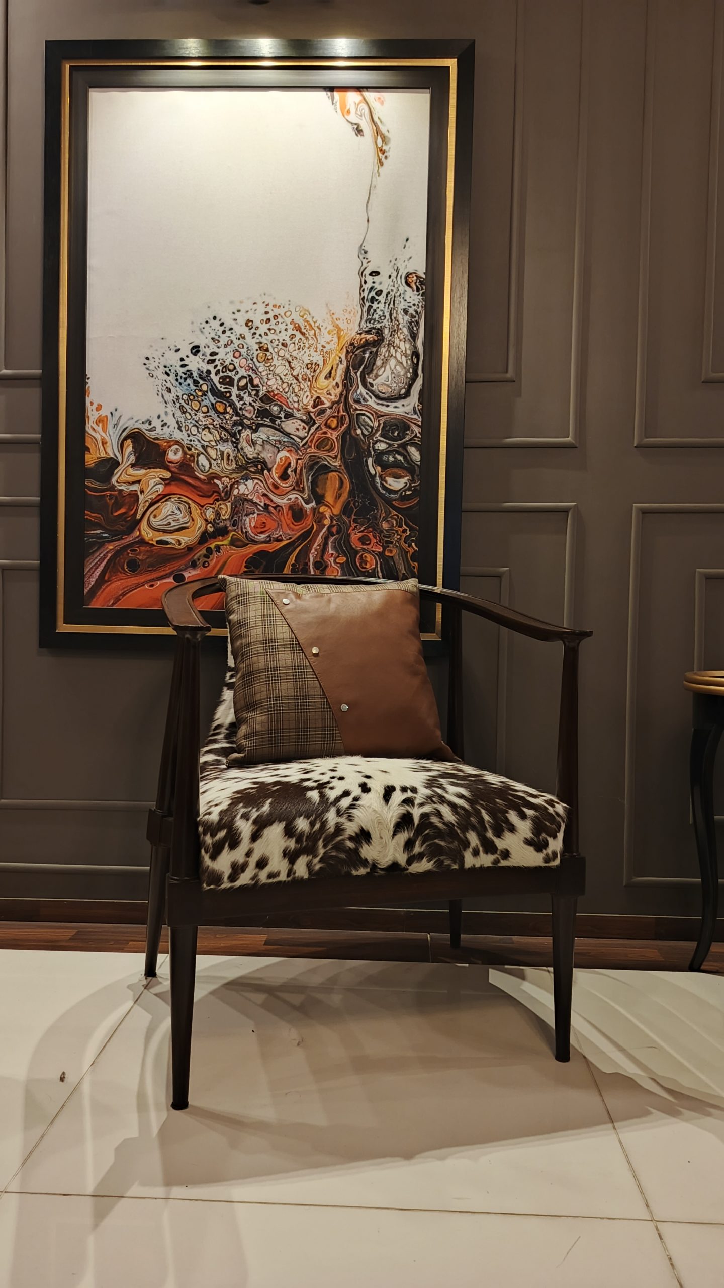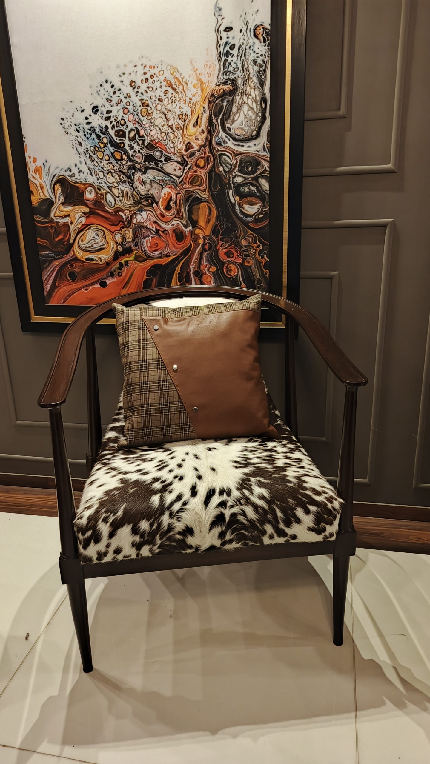 Transform your space with the Easy Decor Modern Accent Chair — where elegance meets comfort. This designer armchair features a stunning cowhide upholstered seat, a premium wooden frame, and a sophisticated leather and plaid cushion combination that adds a touch of luxury to any interior. Perfect for living rooms, lounges, or office spaces, this statement piece effortlessly blends contemporary style with timeless charm.